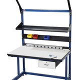 The Basics is available as a single sided stand alone station or a double sided stand alone work bench. To help keep cost down, add on work benches are available for both the single sided and double sided work benches. Add-on units require starter units to function.