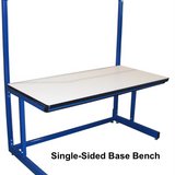 Single Sided work benches come complete with frame, two top supports, two horizontal leg supports and one worksurface.